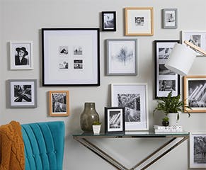 Nothing refreshes a room like creating a gallery wall. They are the ultimate mix and match wall decor, and you can have lots of fun with different coloured frames, and vibrant pictures, prints and photographs.